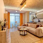 L'appartamento Penthouse Floreasca comprende un patio e un balcone con un impianto di climatizzazione per il massimo comfort. L'appartamento offre agli ospiti la comodità di asciugacapelli e asciugamani in bagno. Inoltre, sono disponibili una vasca spa e un bagno con WC separato.